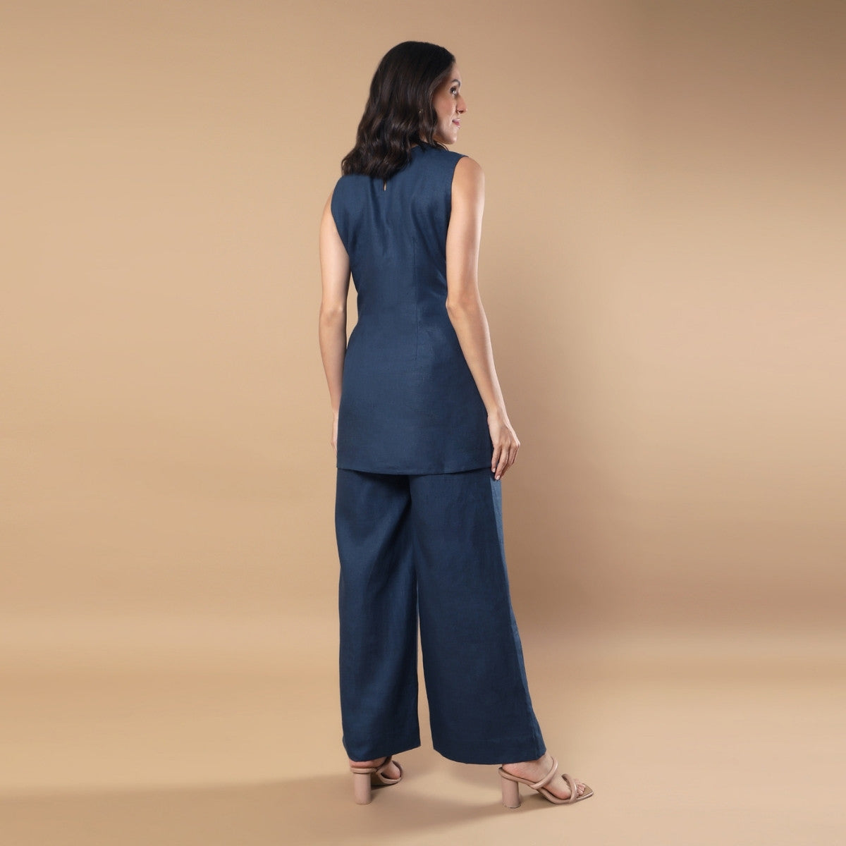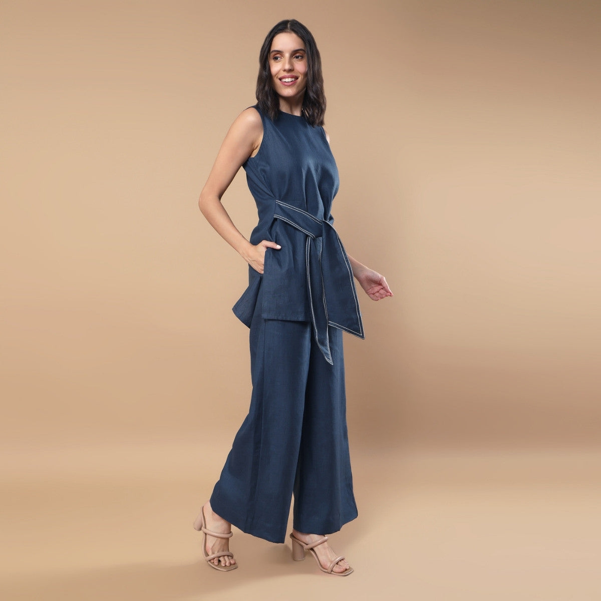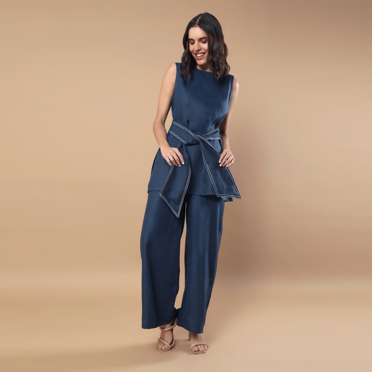 Willow, our sophisticated co-ord set featuring flared pants with sleeveless top attached with belt. With its timeless design and chic silhouette, willow ensures you standout with poise and style.